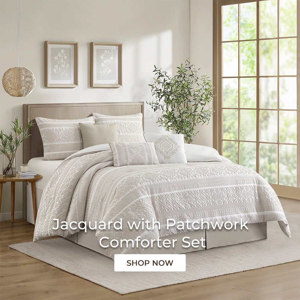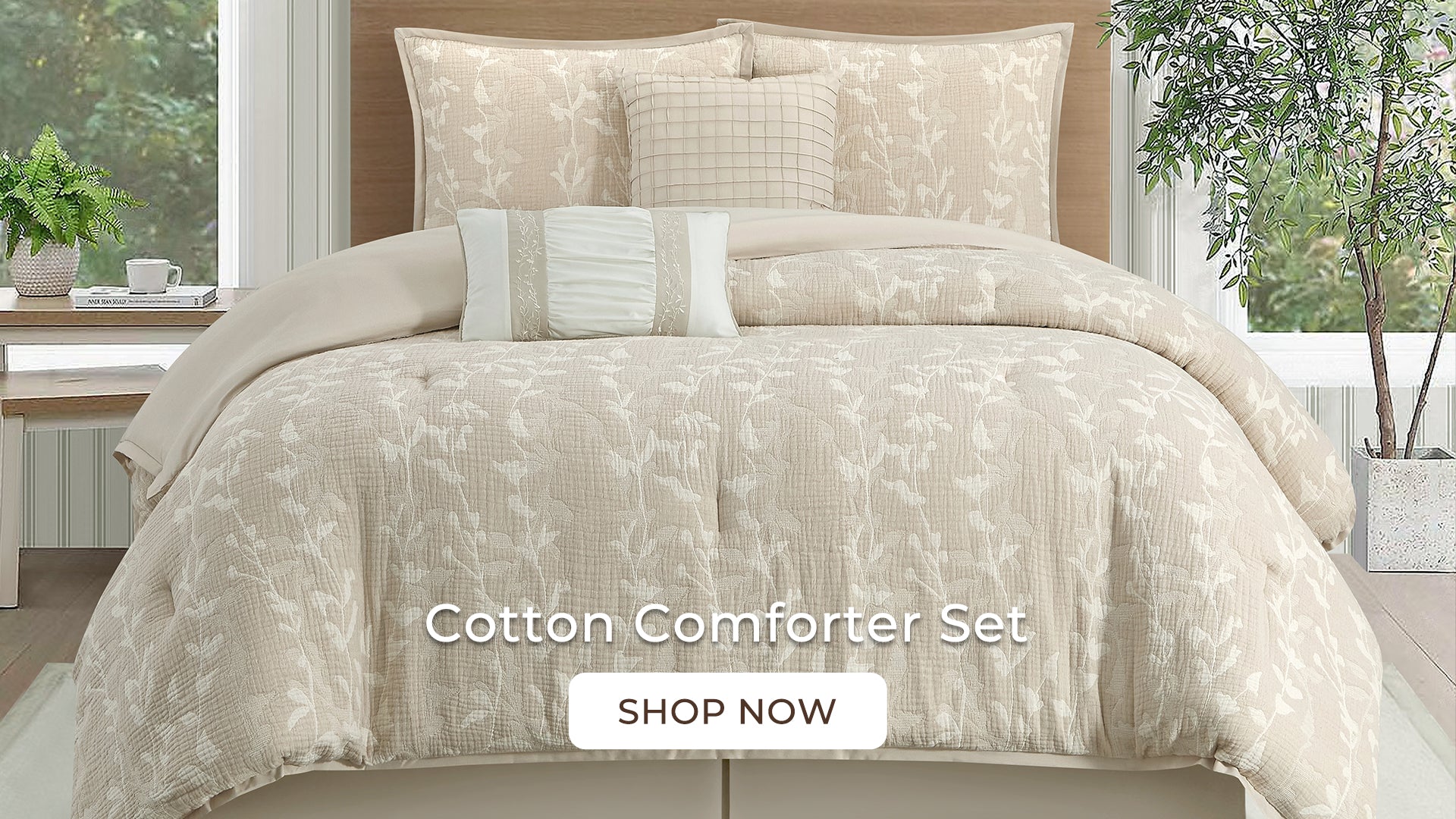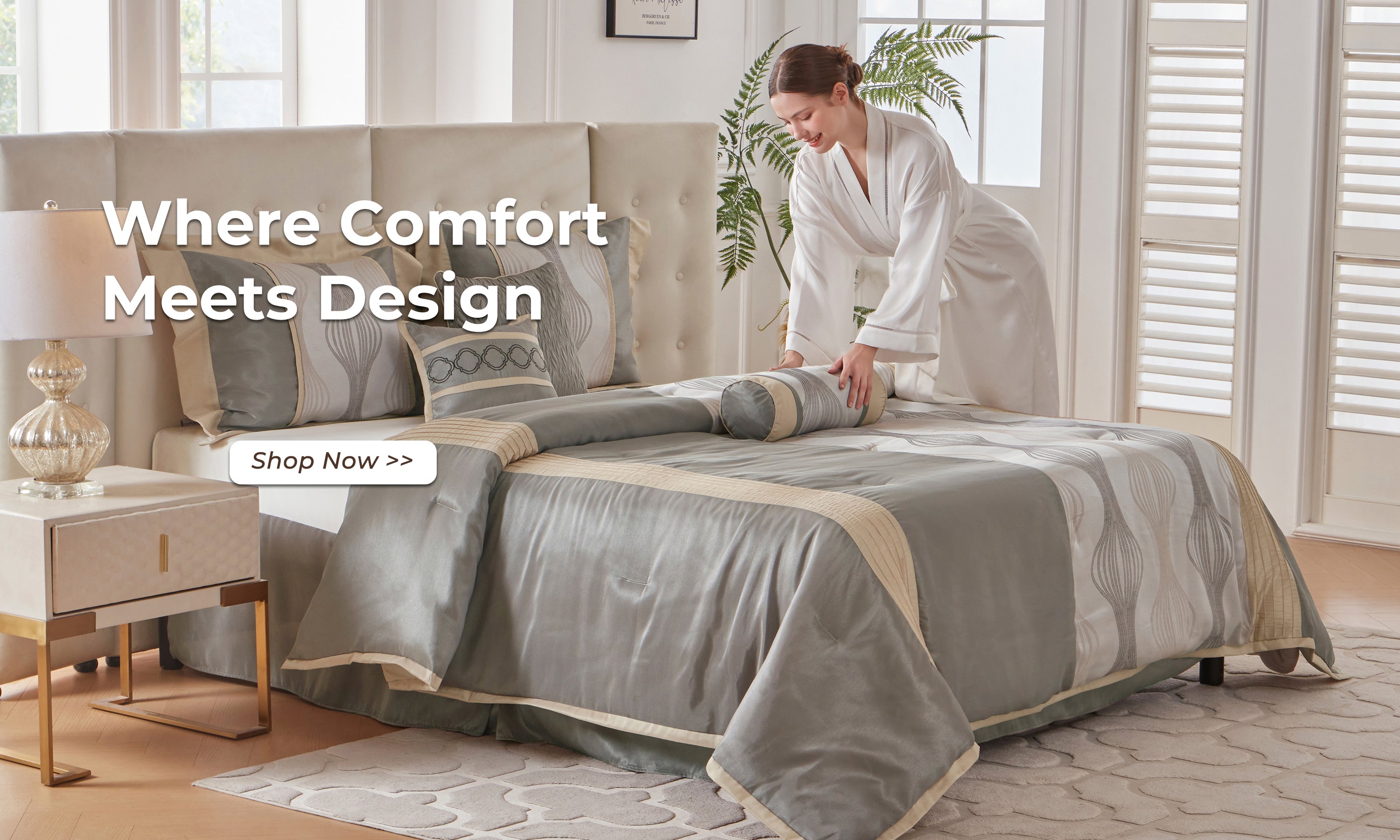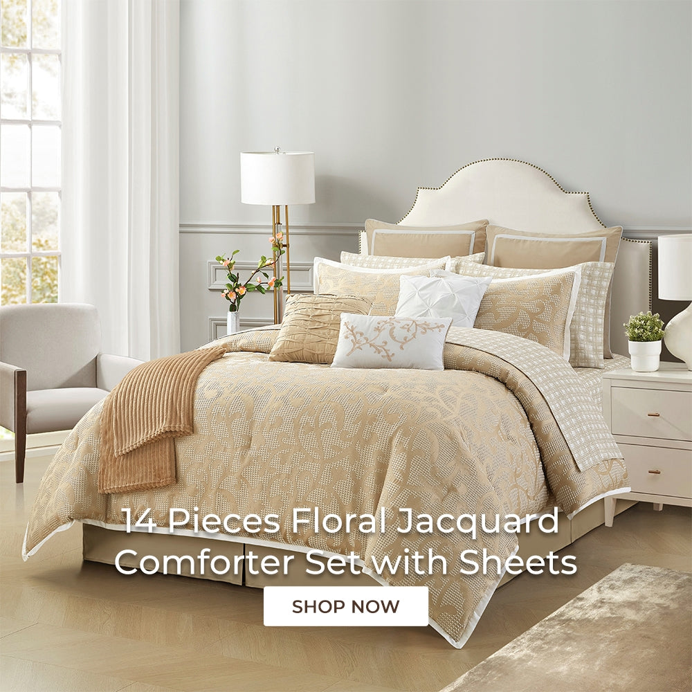 LANCO MODERN LIFESTYLE Beige California King Comforter Set, 7 Pieces Bed in a Bag, Elegant Floral Leaves Embroidery, Soft and Lightweight All Seasons Bedding Set, Bedskirt, Pillow Shams, Decor Pillows