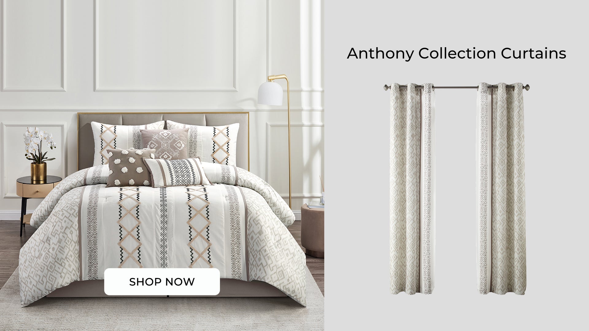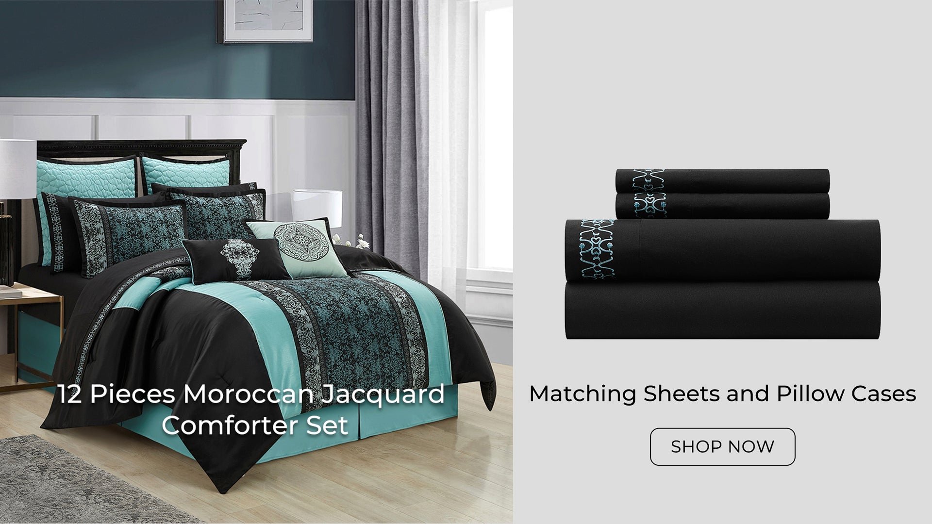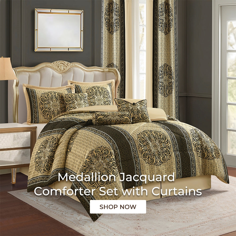 LANCO MODERN LIFESTYLE King Comforter Set, Black Gold Medallion Jacquard Design, Luxurious Bohemian 9 Pieces Bedding Set with Curtains, Decorative Pillows and Bed Skirt