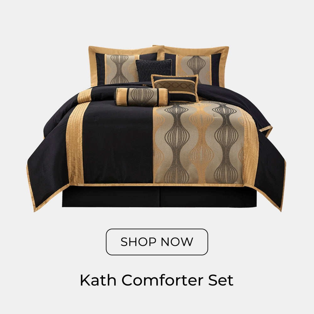 LANCO MODERN LIFESTYLE Queen Comforter Set, Black Gold, 10 Piece Bed in a Bag for All Seasons, Luxury Extreme Comfort Bedding Sets with Bedskirt, Pillow Shams, Euro Shams and Decor Pillows